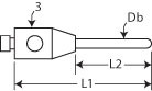 M2 Miniature Stylus - 0.5mm diameter carbide cylinder with full radius end, L1=15mm, L2=10mm, D=3mm